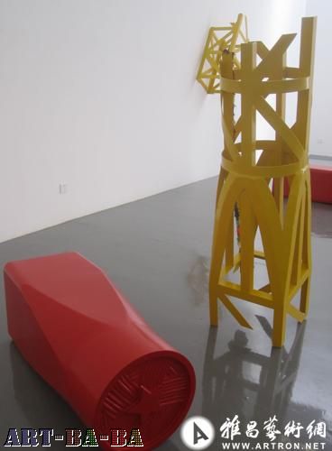 此次展览展出的作品为宋冬、尹秀珍共同创作的两双筷子,每根筷子长12米、由12段组成,宋冬的一双筷子创作灵感来源于房梁,这“房梁”筷子为红色,每一段又分别在空心内部配合他日常的其他装置、影像作品等。而尹秀珍的作品创作灵感则来源于起重机臂架,黄色的臂架上装饰了她其他作品里也经常用的布条。在前波画廊东展厅里,一根红色筷子和一根黄色筷子组成了一双完整的巨型筷子,完整的组合让人忽略了作品里的细节部分。而在画廊的西侧展厅和小展厅里,另外一根红色筷子和黄色筷子则是将所有的12段分割开来,以每对为单位交叉的布置在展厅里,筷子的每一个部分和每一个细节都单独展示成一件作品。