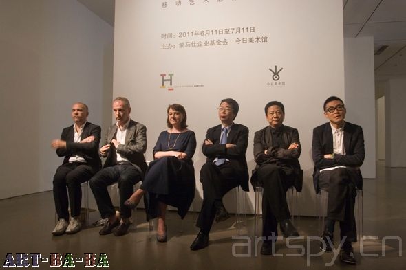 这些影像作品被放置在由建筑设计师狄狄耶(Didier)先生设计的小放映厅中依次播放,主要有克利夫·埃文斯、曹斐、南华妍、汪建伟、朱莉卡·路德琉斯、马克·刘 易斯、尼基·乔普拉&穆尼尔·卡巴尼、萨拉·拉莫等艺术家的代表作。它们分别创作于2009、2010年以及2011年,其中创作于2010年的3件影像作品为全球首次展映。策展人本杰明·维尔(Benjamin Weil)先生、爱马仕企业基金会主任凯瑟琳·特肯斯(Catherine Tsekenis)女士,建筑设计师狄狄耶(Didier)先生、中国艺术家汪建伟出席了发布会。