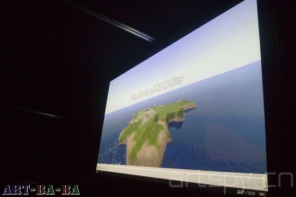 2011年6月10日下午,今日美术馆偌大的展馆,被一个太空舱形状的放映小厅占据。这是由爱马仕企业基金会发起的“HBOX”影像展,也是该项目启动五年之后首次来到中国。展出的8部影像作品中,有两部来自中国艺术家。它们是汪建伟的《零》和曹斐的《人民城寨的诞生》。前者表现的是一个从高层坠下的人在下坠过程中看到的中国人生百态,后者内容则是用制作3D游戏的手段对于假大空的当今社会的一种动画讽刺。