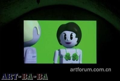 斯塔克的故事片长度的动画录像是在不同方面被抑制的威尼斯双年展中,少数的真实力作之一。它运用了低端的技术,里面有无花果书页覆盖的头像,其中一个是艺术家本人,这部影片通过两个匿名男人重新激活了斯塔克之前的录像聊天室。结果,陌生人之间私密的对话却空开化了,令人尴尬,别扭,却又忍不住大笑,产生了强烈的效果。